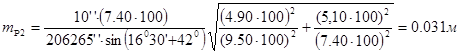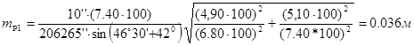 - средняя квадратическая ошибка положения определяемого пункта: mp1=0,036 м и mp2=0,031 м