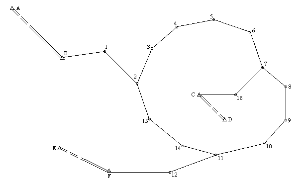Контроль:е) вычисляем нулевые приближения координат узловых точек путем передачи координат по одному звену от твердых точек:
