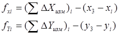 Выполняем контроль вычисления Х и У и невязок по формулам: