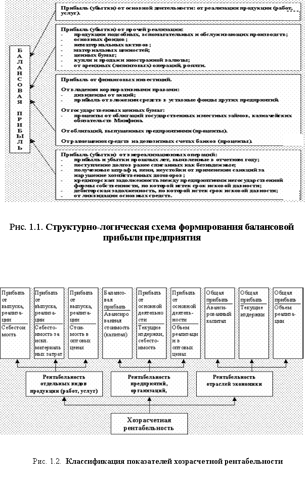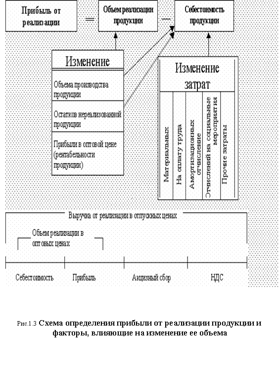 На рис.1.3 (см. стр. 17) приведена структурно-логическая схема формирования прибыли от реализации продукции, а также названы основные показатели, влияющие на прибыль от реализации.