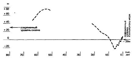 Рис.6. Колебания уровня Каспийского моря за последние 80 тыс. лет