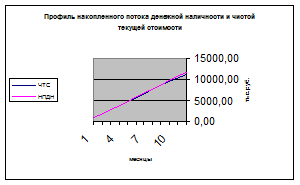 Рисунок 6.1 Профиль накопленного потока денежной наличности и чистой текущей стоимости