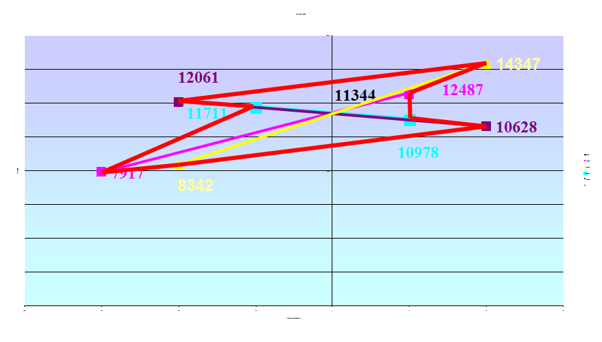 Полученные зависимости чистой текущей стоимости от факторов изображены на рисунке 6.2. Значения ЧТС на каждой прямой, соответствующие крайним точкам диапазона, соединены между собой, образуя фигуру, напоминающего «паука».