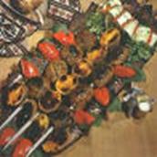 Небольшими кусками по 80-100 г нарезать мякоть баранины. Со всех сторон отбить деревянным молоточком, нанизать на шампур и жарить над раскаленными углями, периодически поливая раствором соли с чесноком и перцем. Готовое мясо переложить в кастрюлю с зажаркой, подлить немного горячего бульона и тушить до готовности под крышкой. К столу подать с крутой кашей.