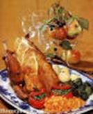 Обработанную индейку сварить в небольшом количестве воды. Вынув из бульона, тут же посолить чесночной солью, посуду плотно закрыть крышкой и дать мясу остыть. К столу подать с щипси или щхыущипс, зеленью и овощами.