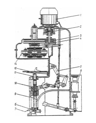 Волчок (рис. 2) установлен на станине сварной конструкции и включает механизм подачи сырья, режущий механизм, привод и загрузочную чашу.