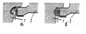 Сущность процесса закатки состоит в герметичном присоединении крышки к корпусу банки путем образования двойного закаточного шва. На корпус надевается донышко и в собранном виде эта пара плотно зажимается между верхним и нижним патронами и начинает вращаться. Расположенный сбоку закаточный ролик прижимается к вращающемуся донышку и обкатывает его. Сложность формы шва и особенности силового воздействия обуславливают выполнения закатывания в две последовательные операции (рис. 6): а) подгиб поля крышки и ее завитка под фланец корпуса; б) окончательное сжатие шва, полная герметизация межслойных зазоров пастой. Таким образом, получают двойной закаточный шов.