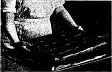 На подготовленные пласты накладывают левой рукой мерную алюминиевую линейку шириной 90 мм с ручкой посредине и находящимся в правой руке ножом разрезают пласты на продольные полосы. Желательно иметь нож в виде пилы с невысокими (2—3 мм) зубцами. При резке лезвие ножа должно соприкасаться с краем линейки поворачивают на 90° и при помощи той же линейки разрезают заготовку поперек на пирожные, подгоняя их под требуемую массу. В местах среза ровность крошковой поверхности нарушается, ее выравнивают легким нажатием линейки. Поверхность пирожного осыпают сахарной пудрой