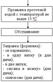 Обмывание и обсушивание. Мясо должно поступать в цех уже оттаявшим. Обмывание происходит в специальных помещениях или ваннах при помощи щеток-душей. Обмытое мясо обсушивают хлопчатобумажными салфетками не более 5 минут, тогда как при обсушивании нагнетаемым воздухом затрачивается от 1,5 до 2 часов.