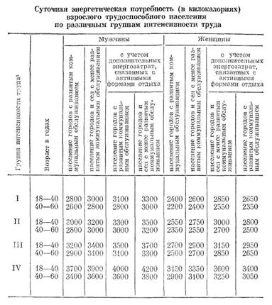 Группы интенсивности труда подробней описаны в главе 2. Отсюда следует, что я отношусь к I группе. Далее, по таблице 1 определяю, что суточная энергетическая потребность в ккал = 2400.