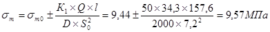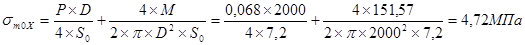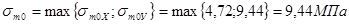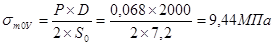 Определение максимального мембранного напряжения от основных нагрузок реакции опоры по формуле: