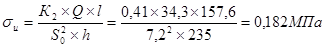 Проверка прочности стенки аппарата под опорой - лапой без накладного кольца.