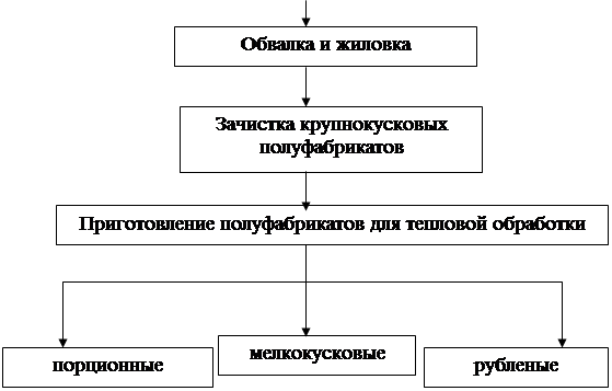 Первичную обработку овощей производят в овощном цехе, а первичную обработку мяса – в мясном цехе.