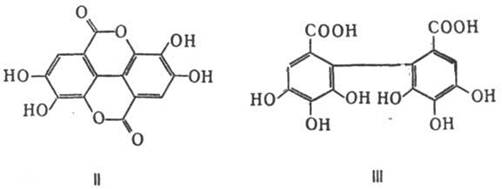 Рисунок 2 – II эллаговая кислота, III 4,5,6-гексагидроксидифеновая кислота