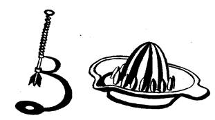 Рис. 4. Слева — устройство для вынимания косточки из вишни, справа — соковыжималка для лимона