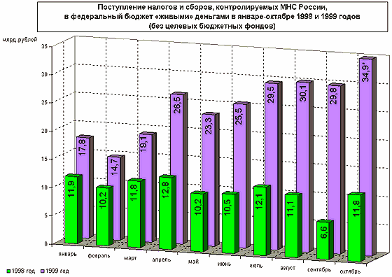 В 1999 году впервые после 1995 года сбор налогов происходил с опережающими темпами, что, на первый взгляд, не могло не радовать.