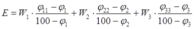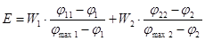 В частном случае, когда исходная смесь может быть разделена на компоненты в чистом виде, т.е φmax1 = φmax2=1, показатель Е будет равен:
