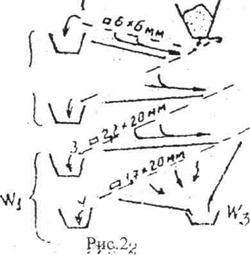 Таким образом, основной компонент /зерно/ выделяется проходом через сито диаметром 5 мм и сходом с сита 1,7x20 мм. Второй компонент / крупные примеси / выделяется сходом с первых двух сит с отверстиями 6x6. мм и диаметром 5 мм. Третий компонент /мелкие примеси/ - проходом через сито с отверстиями размером 1,7x20 мм. 4. Порядок выполнения работы.