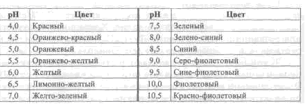 Таблица 5 Зона перехода окраски индикаторов в области рН от 3,0 до 11,0