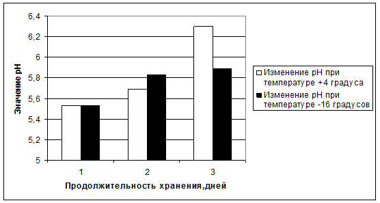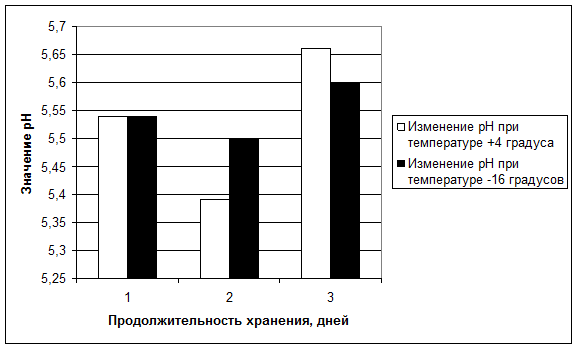 Диаграмма 1. Изменение рН мяса курицы при хранении