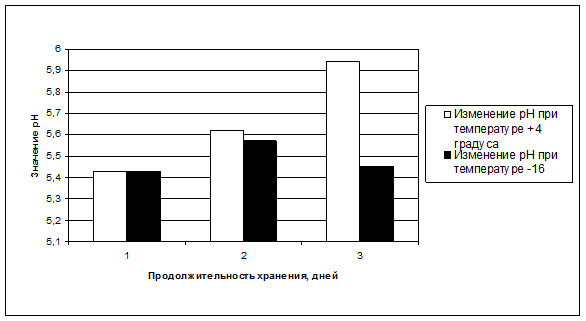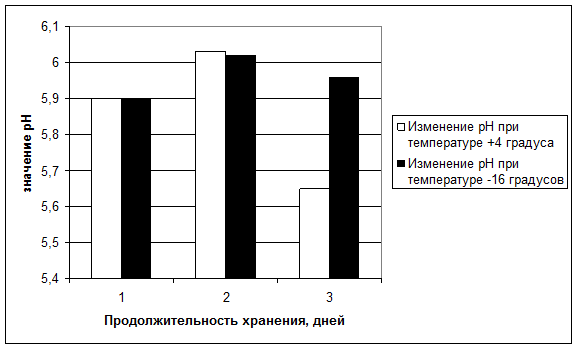 Диаграмма 2. Изменение величины рН говяжьего фарша при хранении