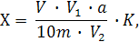 где V – объем раствора молярной концентрации 0,1 моль/дм3 гидроокиси натрия или гидроокиси калия, израсходованного при титровании исследуемого раствора, см3;