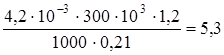 где М = 4,2×10-3 –объемная производительность за секунду, м3/с;