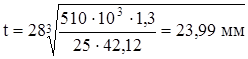 Принимаем ближайшее большее значение t = 25,4 мм.