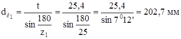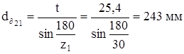 Число зубьев ведущей звездочки z1 = 25, ведомой: