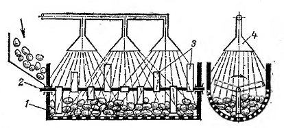 Рис. 3. Схема мытья овощей в барабанной овощемоечной машине