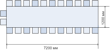 Для определения требуемой длины столов необходимо знать: форму столов, во сколько линий будут рассажены гости. Принимаем рассадку гостей за общим столом прямоугольной формы, гости будут рассажены в 2 линии.