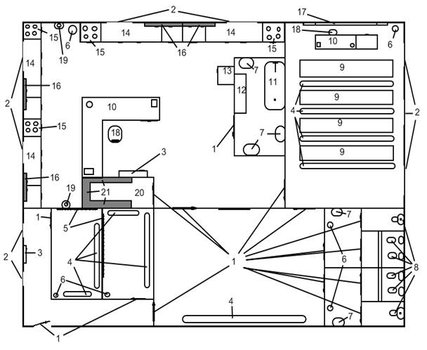 14 – Производственный стол с встроенными шкафами для хранения инвентаря.