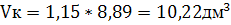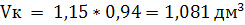 Vк - объем занимаемый продуктом, дм3