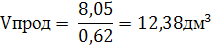 Vпрод – объем, занимаемый продуктом, дм3