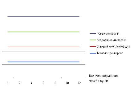 На рисунке 4 показан приблизительный график выхода на работу производственных работников на примере холодного цеха, кроме грузчика и уборщика.