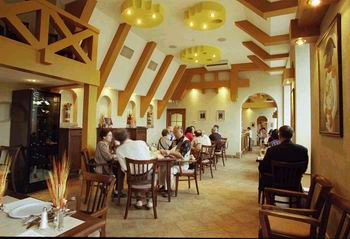 На стенах зала ресторана развешаны исторические фотографии начала прошлого века. Вот только удостовериться, что на них изображены Ленин или Брежнев, не получится: известные персонажи «награждены» мышиными мордашками. Во втором зале можно ознакомиться с портретами мышиного семейства.Массивные деревянные балки, выкрашенные в коричневый цвет, хорошо сочетаются с темной каменной плиткой, которой выложен пол и, частично (в качестве декоративного вкрапления), стены.