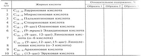 Расчет хроматограмм осуществляют методом внутренней нормализации, при котором концентрацию компонента Сi, анализируемой смеси рассчитывают по формуле 1. Далее составляют таблицу для сравнения жирнокислотного состава исследуемых образцов эмульгаторов:
