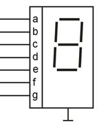 Блок индикации предназначен для отображения состояние регистров цифрового устройства. Данный блок состоит из семисегментного индикатора с общими катодами (рис. 2.1.7), т.к. он управляется высоким уровнем сигнала.