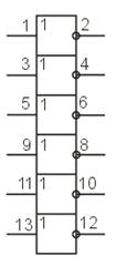 Данная ИМС содержит шесть элементов НЕ, каждый из которых работает в соответствии с таблицей 3.1.1.