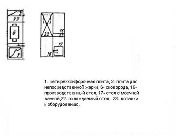 Схема технологической линии приготовления блюда предусматривается при проектировании горячего цеха предприятия, включает необходимое оборудование с учетом данных табл. 1.5.– «Карта технологического процесса»