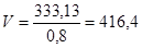 Необходимый объем V,м³, хранения сырья: