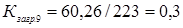 ((223-60,18)+(223-120,39)+(223-15,05)+(223-15,05)+(223-40,14)+(223-30,11)+ +(223-30,12)+(223-60,25)+(223-60,26)+(223-120,53)+(223-223)+(223-215,43)+(223-201,1)+(223-54,86)+(223-60,36)+(223-67,07))/223∙16=0,45