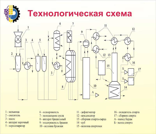 Описание технологического процесса производства спирта