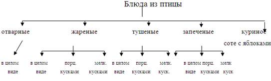 Иерархический метод классификации дает возможность одновременно фиксировать и сходство, и различие объектов, полнее характеризовать их. В технологии приготовления пищи отдельные группы кулинарной продукции резко отличаются друг от друга сырьевым набором, технологией приготовления, размером исходного полуфабриката (например, мясо крупнокусковое, порционное, мелкокусковое), видом тепловой обработки, т.е. числом классификационных признаков, степенью их важности, порядком использования. Поэтому создание систем классификации по иерархическому методу для большинства групп кулинарной продукции затруднено.
