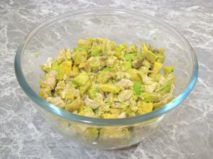 1. спелые авокадо 2. филе курицы 3. сыр 4. сметана 5. соль 6. вода 7. петрушка |
