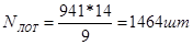 Количество лотков для хранения изделий NЛОТ, рассчитывается по формуле