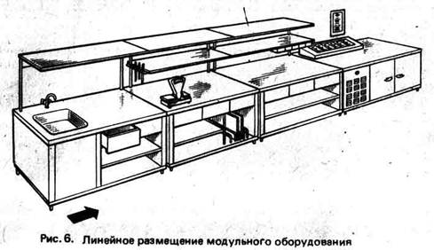 В цехе организуют отдельные рабочие места для изготовления холодных блюд и закусок, сладких блюд и бутербродов. Из оборудования используют универсальный привод, овощерезку с набором различных ножей, хлебо, колбасо и ветчинорезки, приспособление для нарезки масла, сыра, а так же разнообразные выемки, ножи, посуду и формы. Большое значение имеет оформление холодных блюд и закусок, а их привлекательность зависит от формы нарезки, цветового сочетания и расположения продуктов и, конечно, от квалификации повара. Количество необходимой посуды, тары и производственного инвентаря определяют в зависимости от объема выпускаемой продукции, ассортимента блюд и кулинарных изделий. Необходимо разграничить приготовление мясных, рыбных и сладких блюд. Фронт работы каждого повара должен равняться 1,5 – 1,8 м. Если в цехе организована выпечка тарталеток, то для производственного стола и жарочного шкафа выделяют отдельное помещение.