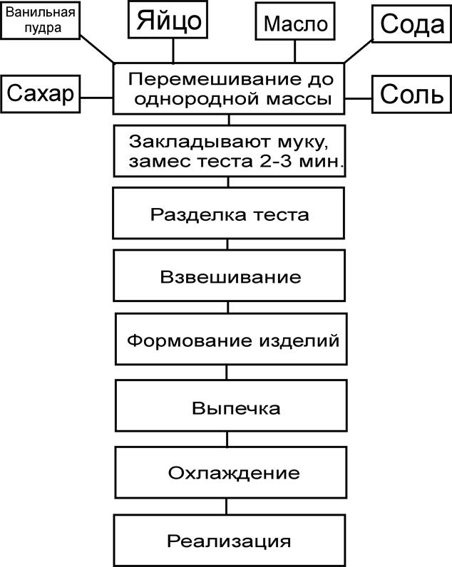 Тесто можно приготовить путем растирания и перемешивание всех продуктов. Допускается также приготовление двух видов теста ванильного и шоколадного цвета в виде шахматной доски. Выпекают при t 230°С. |