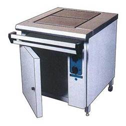 Плита электрическая двухконфорочная со шкафом для инвентаря, предназначена для приготовления пищи и поддержания ее в горячем состоянии, покрытая молотковой эмалью, рабочая поверхность из нержавеющей стали. Применяется в небольших предприятиях общественного питания.