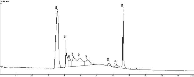 Электрофореграмма 8. Образец фальсифицированного вина «Черные глаза». |